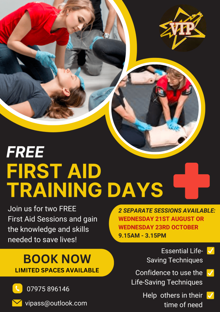 VIP are offering two ๐ ๐๐๐ First Aid Training sessions where you can learn life-saving skills and boost your confidence to help others in emergencies.